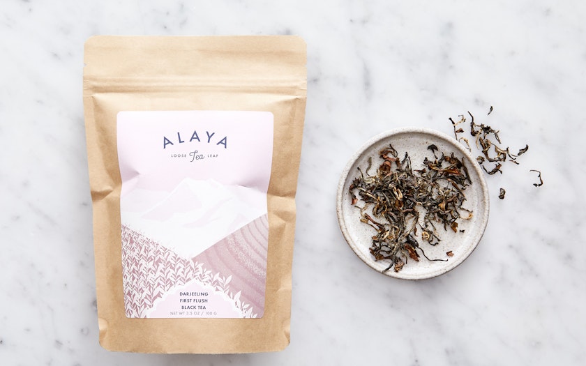 Known as the champagne of teas, Darjeeling First Flush Black Tea is harvested early in the season and is particularly sought after. Darjeeling is grown at a high altitude in rough and often inaccessible terrains. Newly grown leaves and the bud are plucked off and because of how young and delicate they are, they provide a sharply fresh and floral flavor. With little processing and no added chemicals or preservatives, Alaya's Darjeeling First Flush Black Tea is certified organic and biodynamic. Their packaging is 100% compostable, which includes the zipper closure, label, ink, adhesive, and mailer.