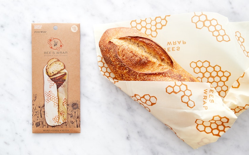 This Honeycomb Bread Wrap helps reduce plastic use and waste in the home. It is made in Vermont with certified organic cotton, responsibly-sourced beeswax, organic plant oil, and tree resin. Reusable, washable, and compostable, it is designed to store bread loaves, keeping them fresh for a longer amount of time. This wrap can also be used as a cover during proofing or as a no-slip surface for kneading dough.