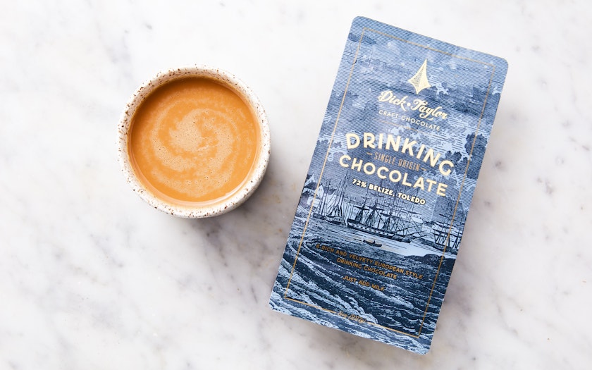 The Single Origin Drinking Chocolate offers a rich and velvety European-style drinking experience. Handcrafted with ethically sourced cacao beans from Maya Mountain Cacao in Belize, this drinking chocolate is noted for its high-quality cacao, which eliminates the need for fillers. The resulting product has tasting notes of dried plum, tart cherry, and jasmine, providing a unique and deeply satisfying flavor profile. This product exemplifies Dick Taylor's commitment to using the finest cacao and traditional European techniques in chocolate-making.