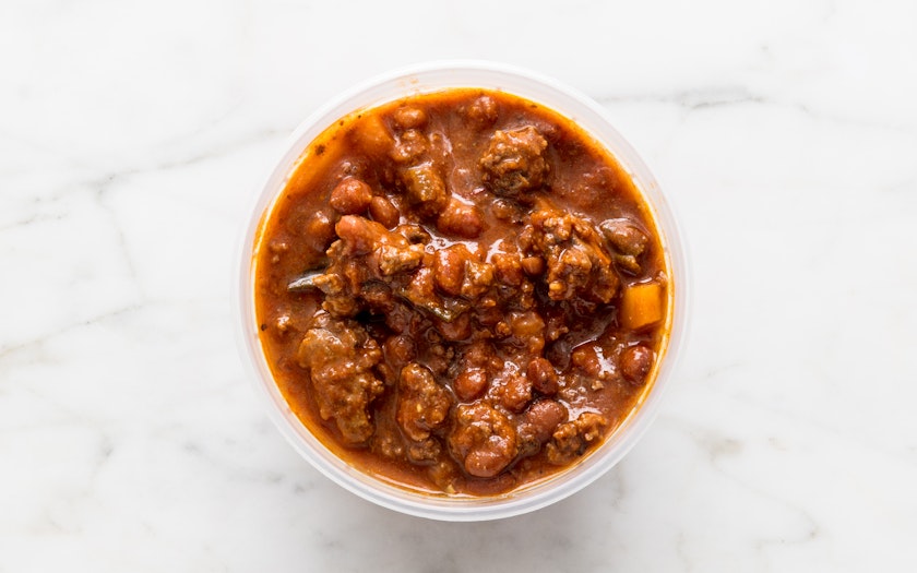 Good chili starts with good ingredients: creamy chili beans, grass-fed beef from our whole animal program with Lost Coast Ranch, and just the right amount of freshly ground spices. This chili is ready to warm in a small saucepan over medium-low heat. Bring to a simmer, and then serve up with your favorite sour cream or tortilla chips.
