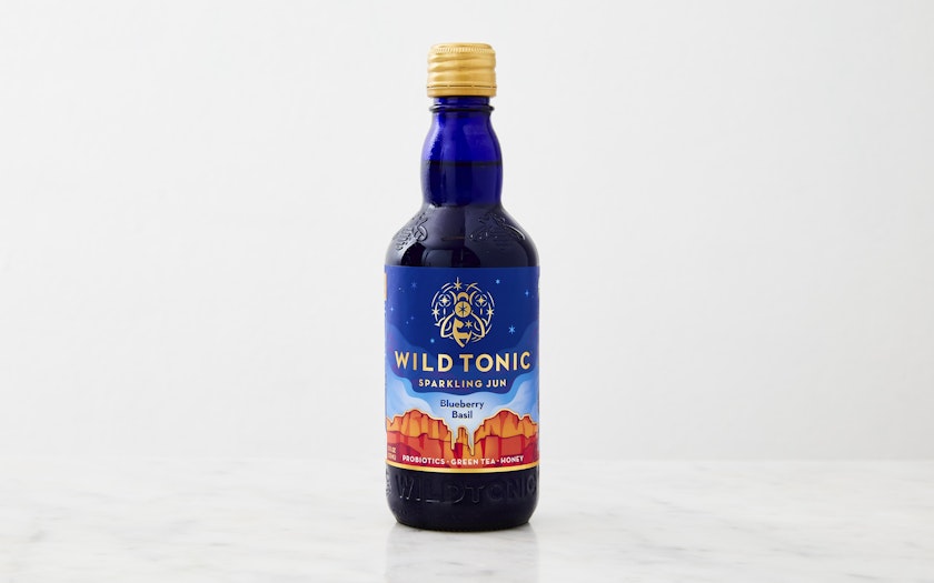 Ingredients: Filtered Water, Honey, Tea, Raw Jun Culture (Yeast And Bacteria), Blueberry Juice, Basil